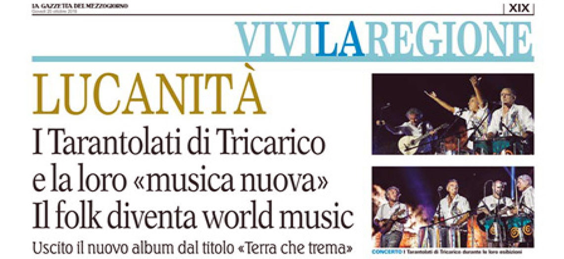 I Tarantolati di Tricarico e la loro "musica nuova": questo è il titolo dell'articolo di Massimo Brancati pubblicato su "La Gazzetta del Mezzogiorno" del 20 ottobre 2016, che analizza "Terra che trema", il nuovo CD dei Tarantolati di Tricarico, ed il lungo percorso artistico del gruppo.