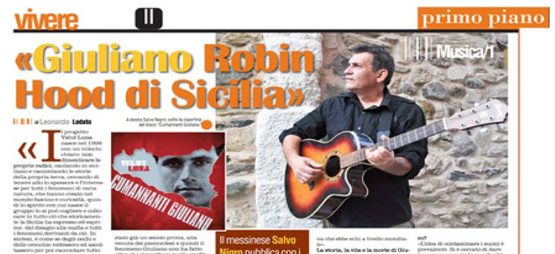 Salvo Nigro, leader dei Velut Luna, parla del nuovo CD “Cumannanti Giulianu”, in un’intervista realizzata da Leonardo Lodato, pubblicata nell’inserto “Vivere” del quotidiano “La Sicilia” in edicola il 20 ottobre.